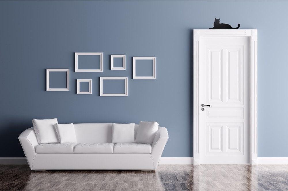 This charming Black Cat Door Topper is the purr-fect addition to any cat lover's home. This versatile piece can be displayed over doors, on a desk or shelf, or even in a window. This black cat silhouette stands at 4.25 inches high and measures 12 inches wide. It has a thickness of 1/2 inch and is expertly painted and sealed for a clean and sleek look. Please note that this item is not suitable for outdoor use. Designed with convenience in mind, this topper is finished on both sides, allowing you to display it facing either left or right. It is a great gift for yourself or for any cat lover in your life. Add a touch of whimsy and feline fun to your home decor with this adorable Black Cat Door Topper.