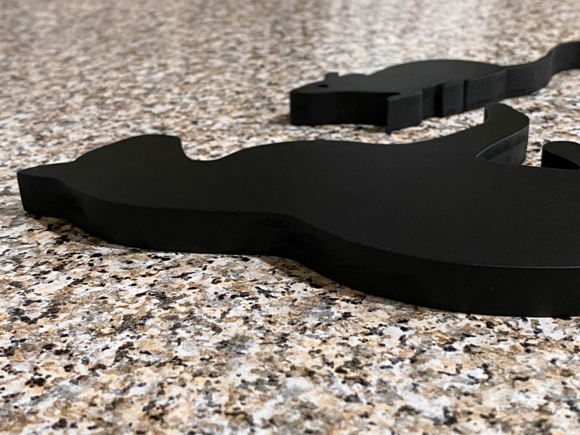 These black cat and mouse door toppers will add a little fun to any room in your home. It would make a perfect gift for the cat lover in your life! The cat and mouse pieces are hand scrolled from 1/2” wood and rest on top of your door frame. They do not need to be attached to the wall, so your wall will be free of nail holes. Great for those rentals! Although you might want to secure them if you have children who like to slam doors 😉 They are painted on both sides so you can face them in either direction. Note: Not for the outdoors The cat is approximately 10” from top of ear to bottom of tail and width is approximately 6 1/2”. The mouse is approximately 6” from nose to tail and about 1 1/2” tall.