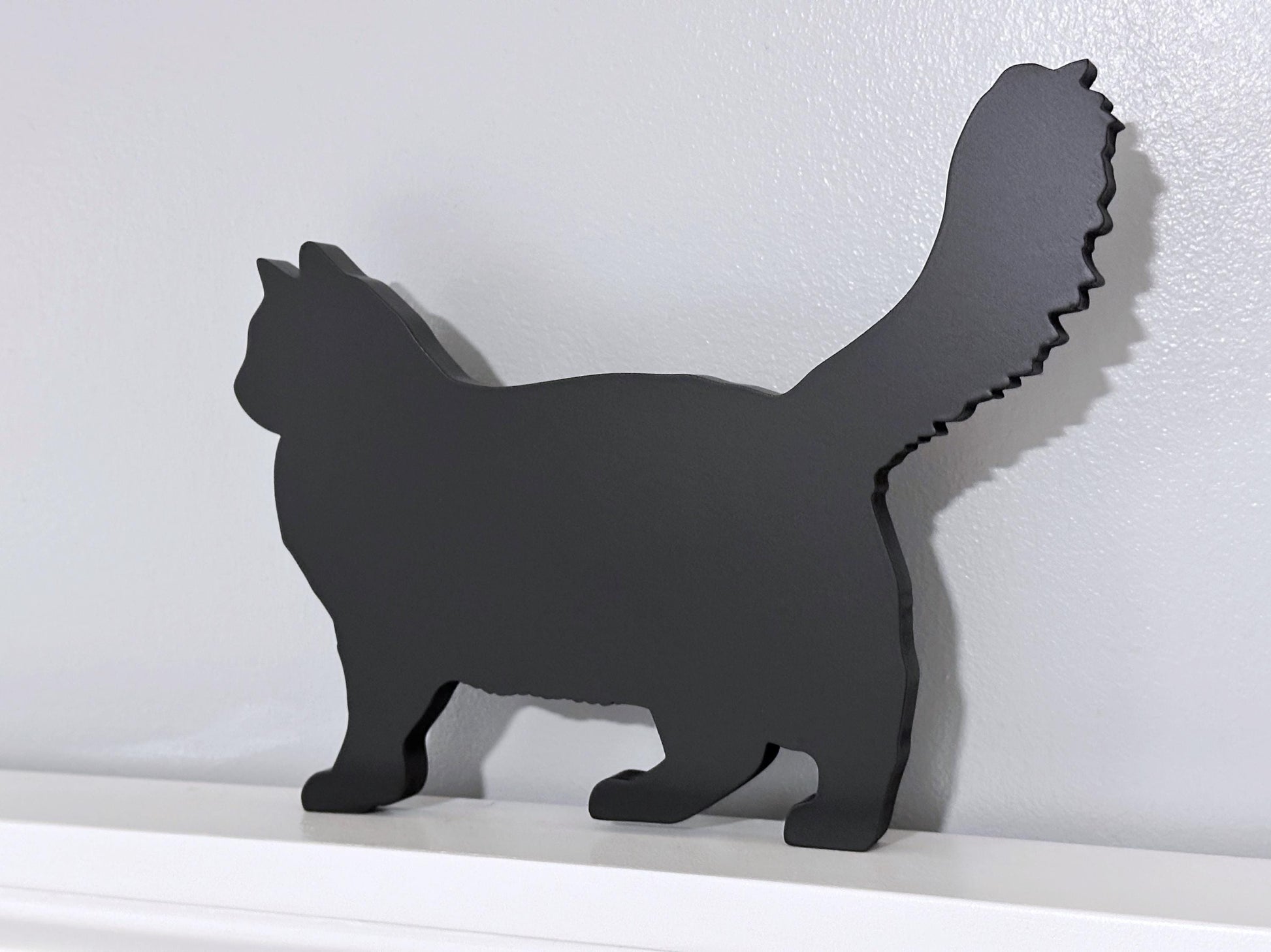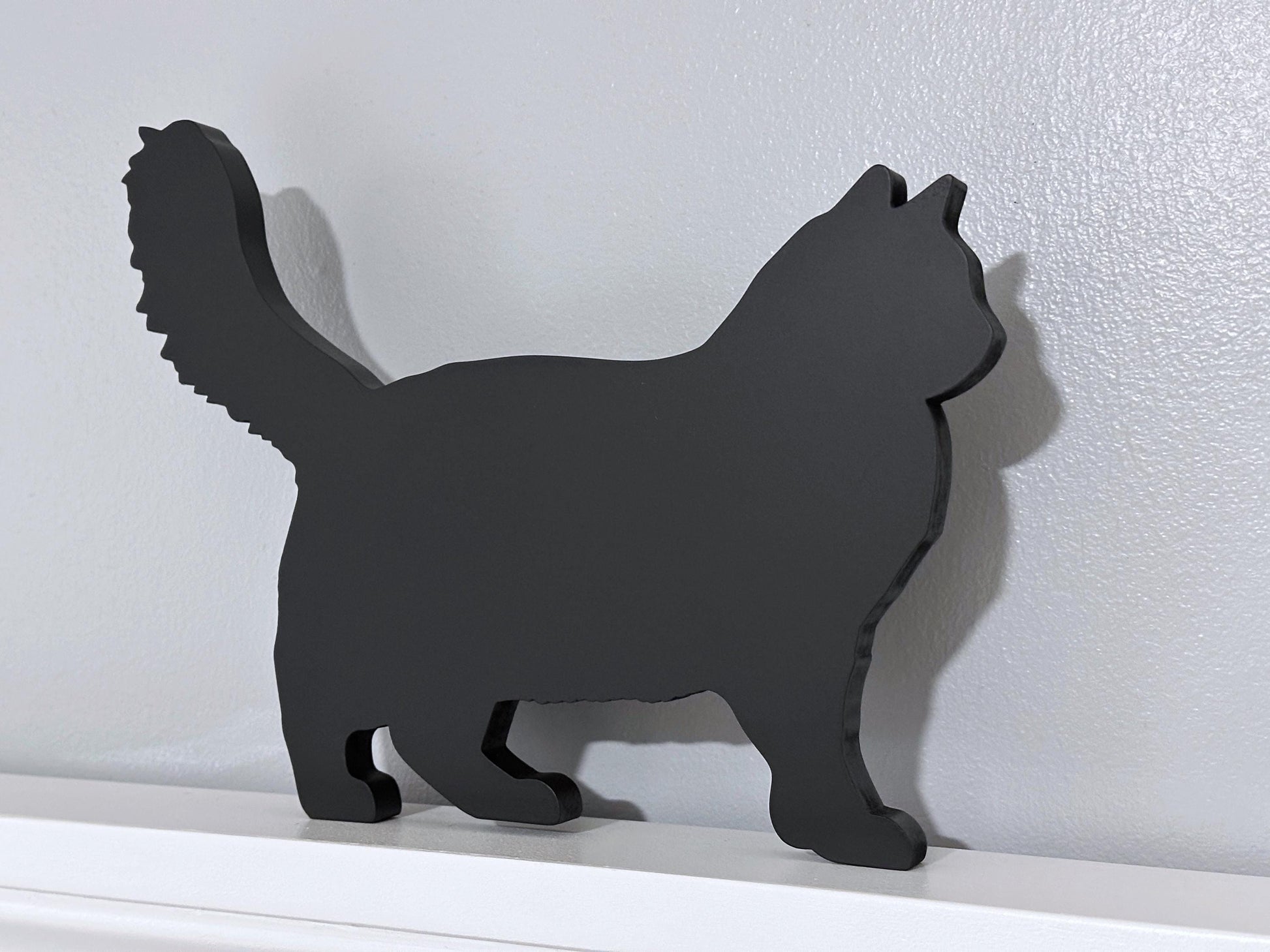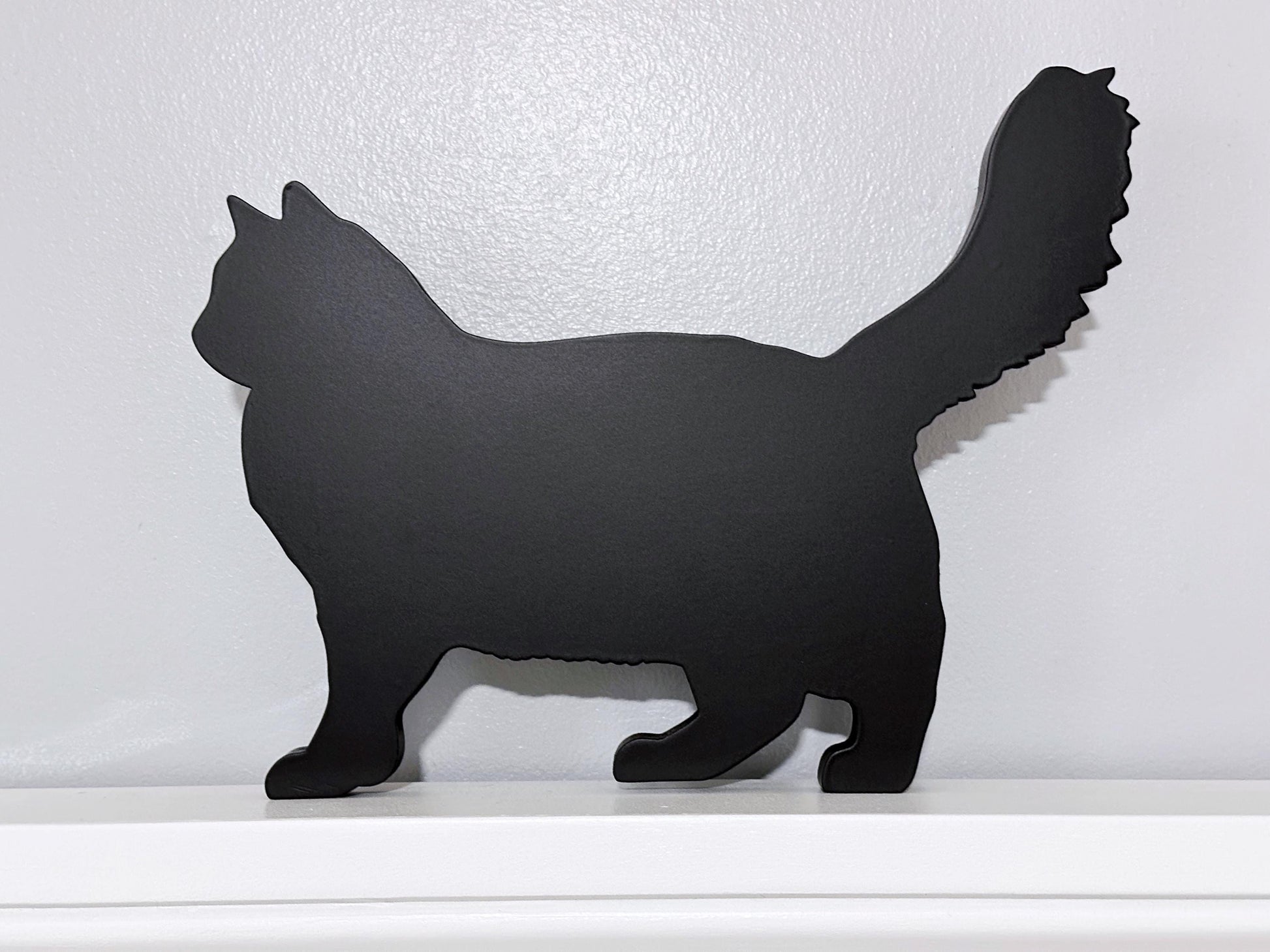 The cat silhouette is a perfect addition to any cat-lover's home, and can be displayed on a bookshelf, mantelpiece or placed over a door frame. It is lightweight, durable and can be easily cleaned with a dry cloth.