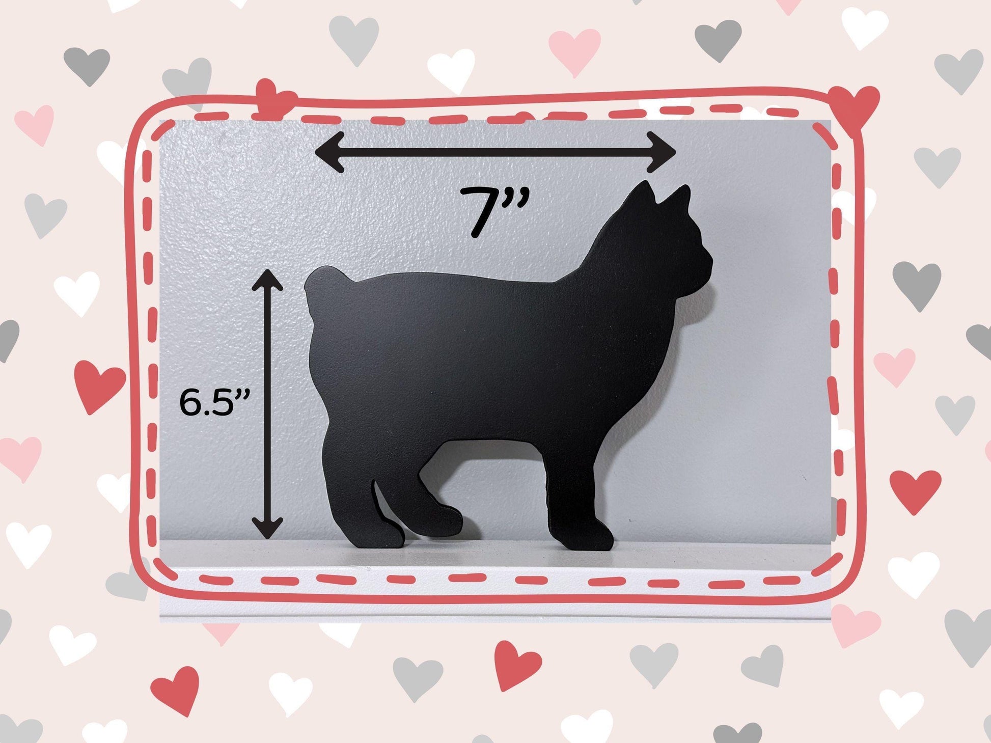 The cat silhouette is a perfect addition to any cat-lover's home, and can be displayed on a bookshelf, mantelpiece or placed over a door frame. It is lightweight, durable and can be easily cleaned with a dry cloth.
